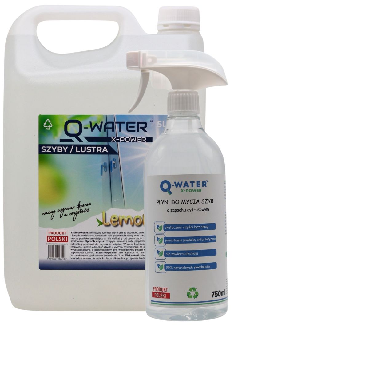 Płyn do mycia szyb i luster 5L + butelka z atomizerem 750 ml